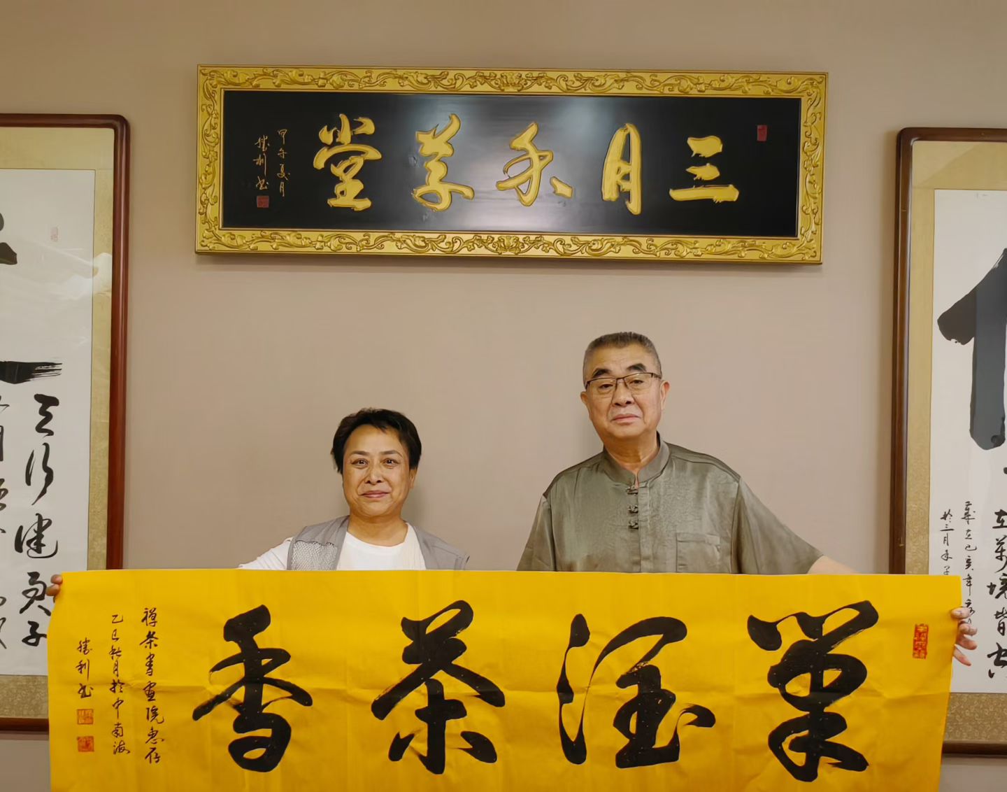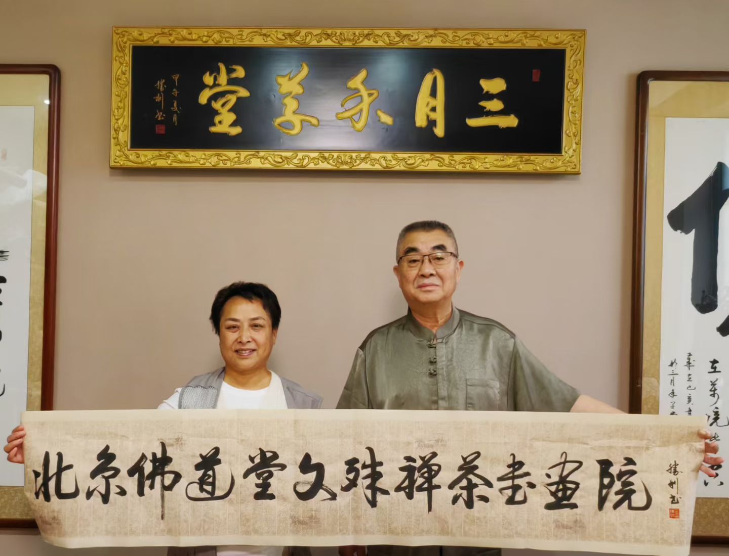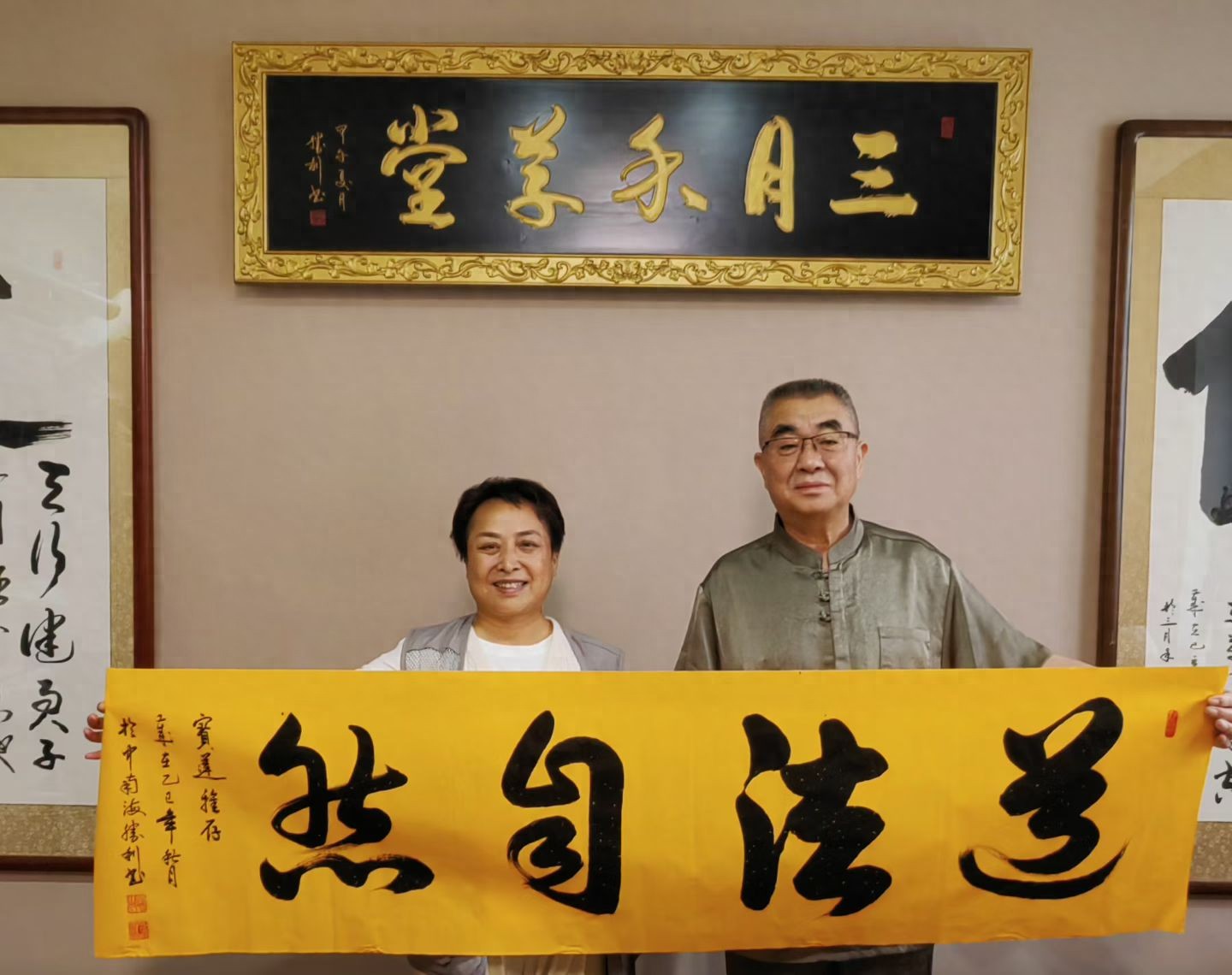 近日,两幅由国务院办公厅行政司原巡视员兼常务副司长王胜利亲笔题写的“道法自然”与“笔润茶香”两幅墨宝,赠予中国传统文化讲师武玉连女士;与此同时,王胜利先生还为武玉连老师的“北京佛道堂文殊禅茶书画院”题字。这几幅作品苍劲有力、包含深意,巧妙呼应了她个人所秉持的“道法自然”的践行历程。