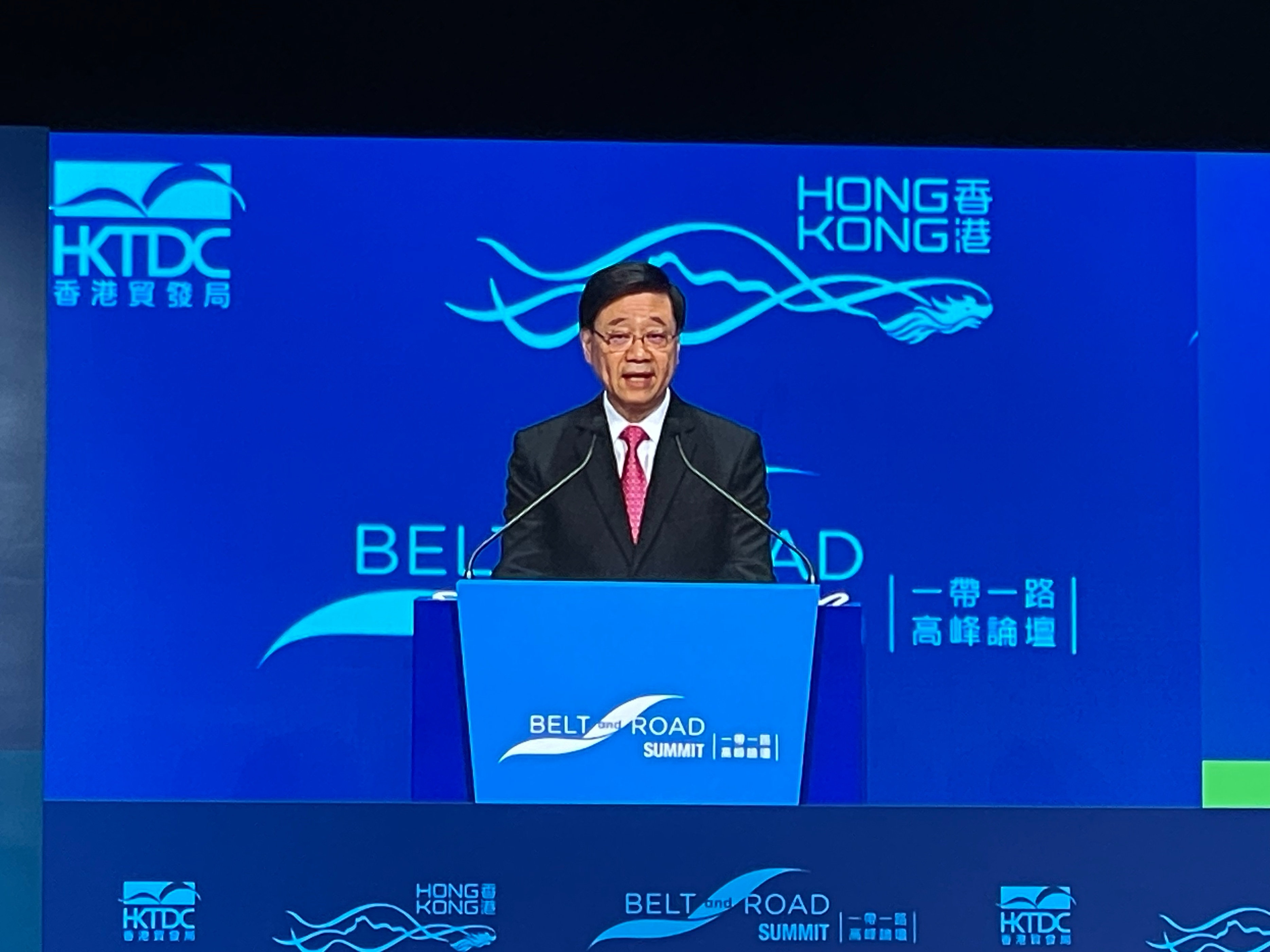 第九届“一带一路”高峰论坛于2024年9月11日至12日在香港会议展觉中心举行。会议开始由香港贸易发展局主任、大紫荆勋贤、GBS、林建岳博士致欢迎词,由大紫荆勋贤、SBS、PDSM、PMSM、中华人民共和国香港特别行政区行政长官李家超先生致开幕词。